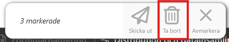 Genom att klicka på knappen Ta bort raderas de respondenter du har markerat. När en respondent raderas tas även dennes svar bort permanent och kan inte återställas.
